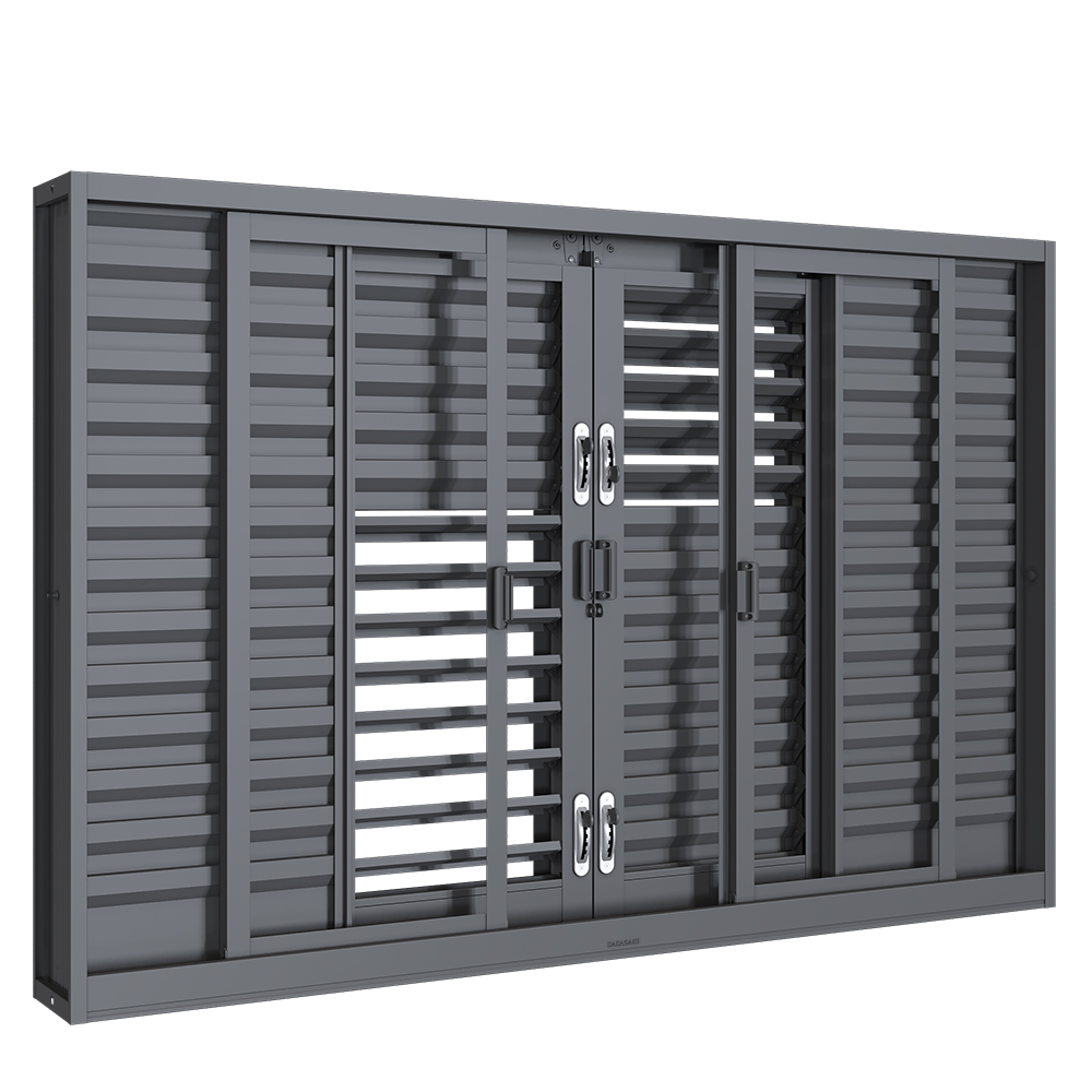 Janela Veneziana Multiflex sem Grade Aço - 6 Folhas - Cinza - Batente 16 cm - Linha Silenfort